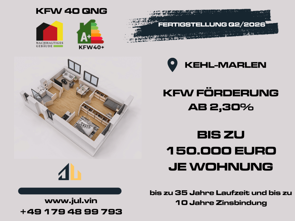 Um die finanziellen Vorteile greifbar zu machen, betrachten wir eine Beispielrechnung für eine Eigentumswohnung mit KfW 40 QNG Standard:
